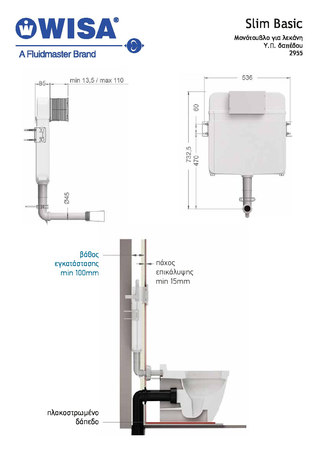 Βάθος εγκατάστασης: minimum 100mm