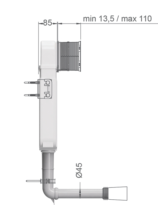 Σημείωση: πάχος 8,5cm για τοποθέτηση σε μονότουβλο τοίχο. Δεν συμπεριλαμβάνεται η πλακέτα χειρισμού