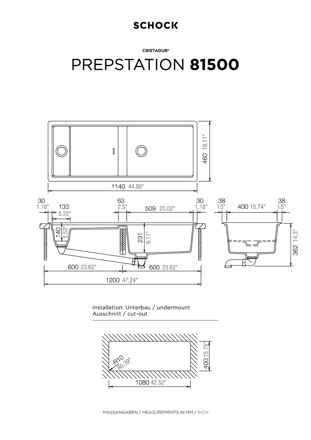 Νεροχύτης PREPSTATION 114×46 ένθετος